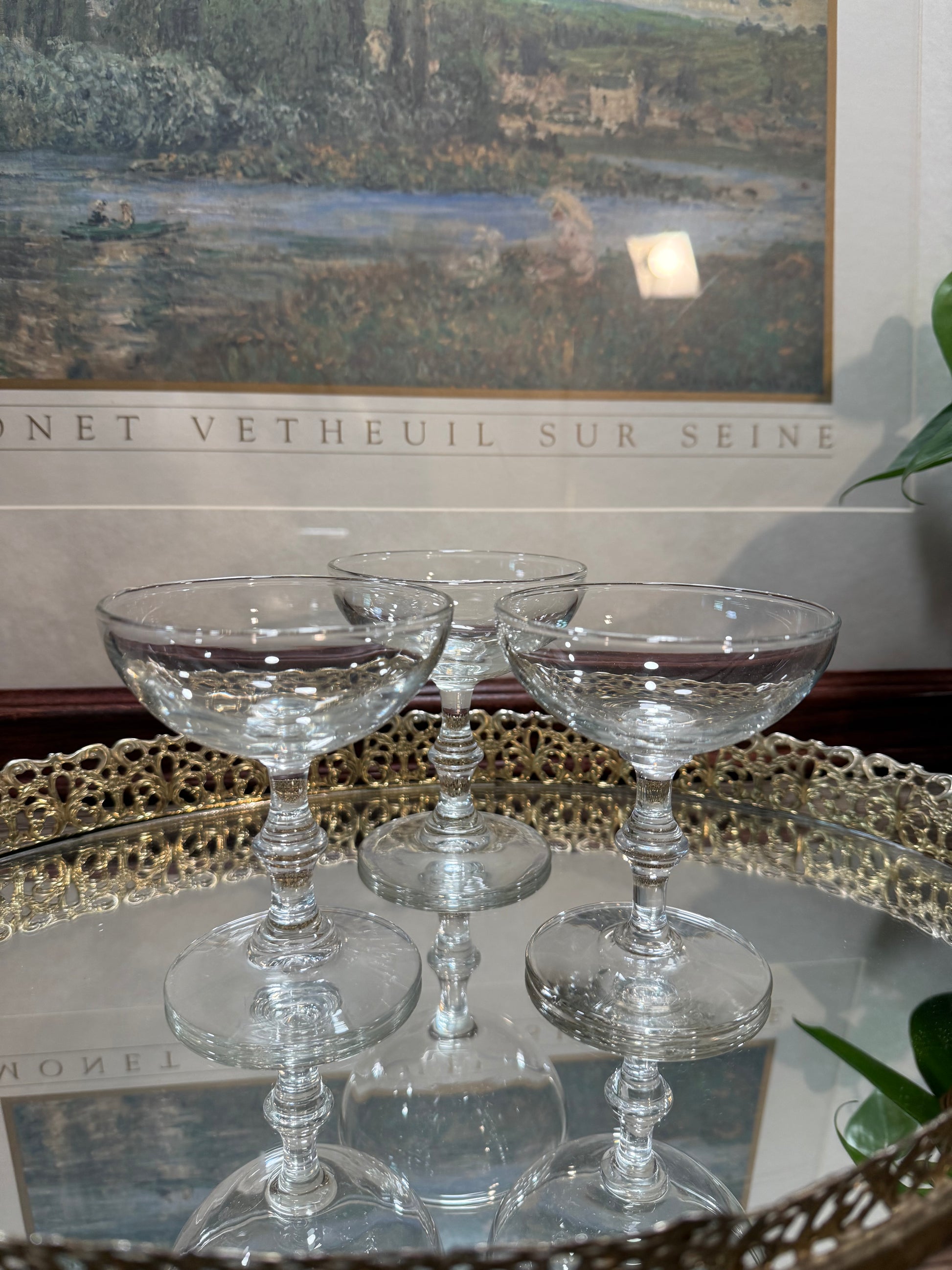 Elevate your champagne game with this trio of vintage coupe glasses. Perfect for any occasion, these glasses add a touch of elegance. With a charming design and high-quality material, they make a cute addition to your glass collection. Cheers to a sophisticated touch!